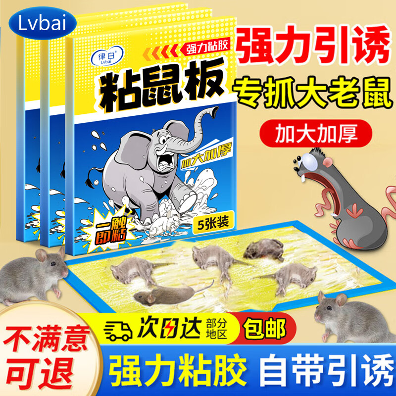 律白粘鼠板强力粘胶大老鼠捕鼠贴5张超强抓灭鼠全窝端大号加厚强粘板