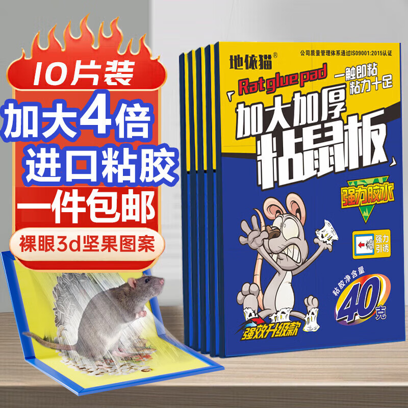 地依猫粘鼠板超强威力大号加厚灭鼠商家用黏鼠贴抓捉捕老鼠粘鼠板10片