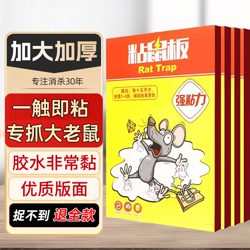 鼠道难粘鼠板超强威力大号加厚灭鼠商家用黏鼠贴抓捉捕老鼠粘鼠板5片