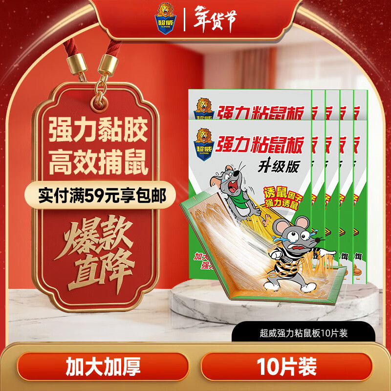 超威粘鼠板超强力粘板 10片 加厚大号灭鼠贴家商用黏鼠贴抓捉捕老鼠贴