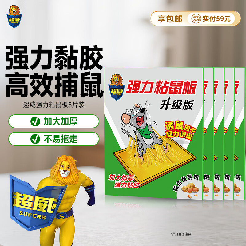 超威粘鼠板超强力粘板5片 加厚大号灭鼠贴家用商用黏鼠贴抓捉捕老鼠贴