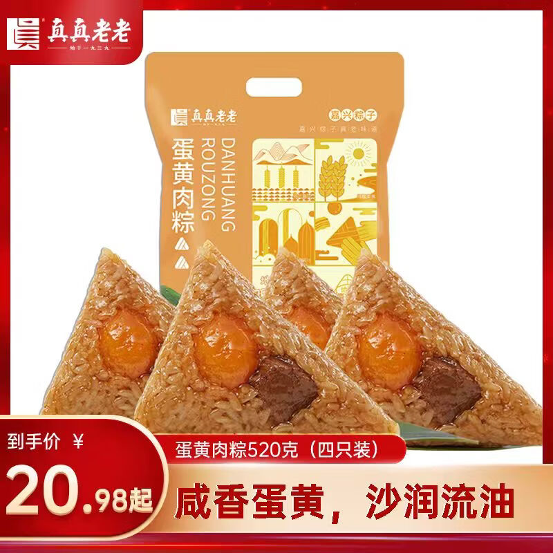 真真老老粽子 咸鸭蛋猪肉粽130克*4只散粽嘉兴老字号粽子特产咸粽
