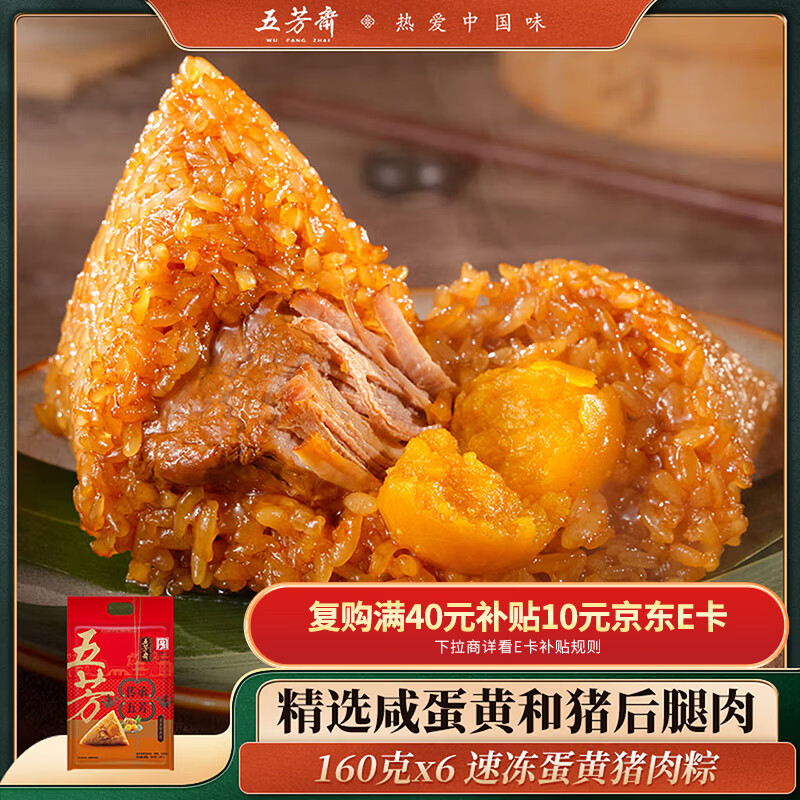 五芳斋 速冻蛋黄猪肉粽 160g*6只 嘉兴粽子蛋黄肉粽端午粽子早餐食品