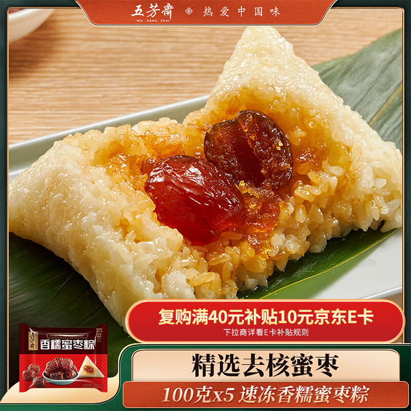 五芳斋 速冻蜜枣粽 100g*5只 嘉兴粽子甜粽端午粽子早餐食品
