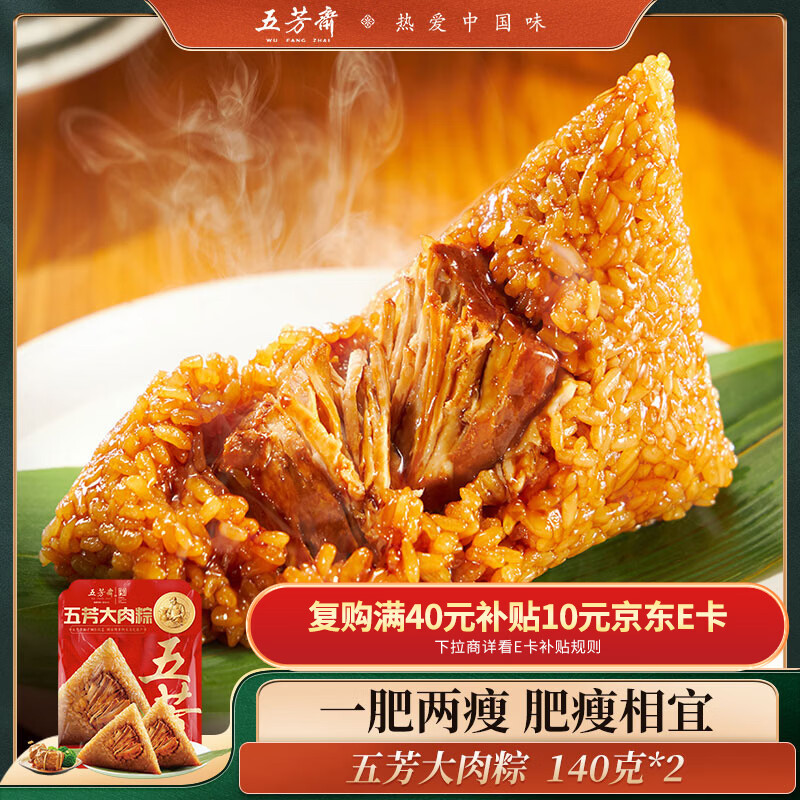 五芳斋粽子 五芳大肉粽280克 140g*2只袋装 中华老字号 嘉兴粽子特产
