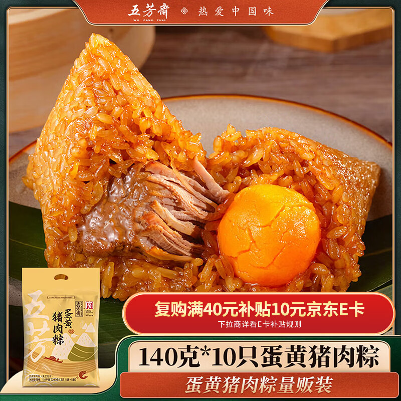 五芳斋粽子 蛋黄猪肉粽140g*10只 端午节 嘉兴棕子特产送礼 2.8斤