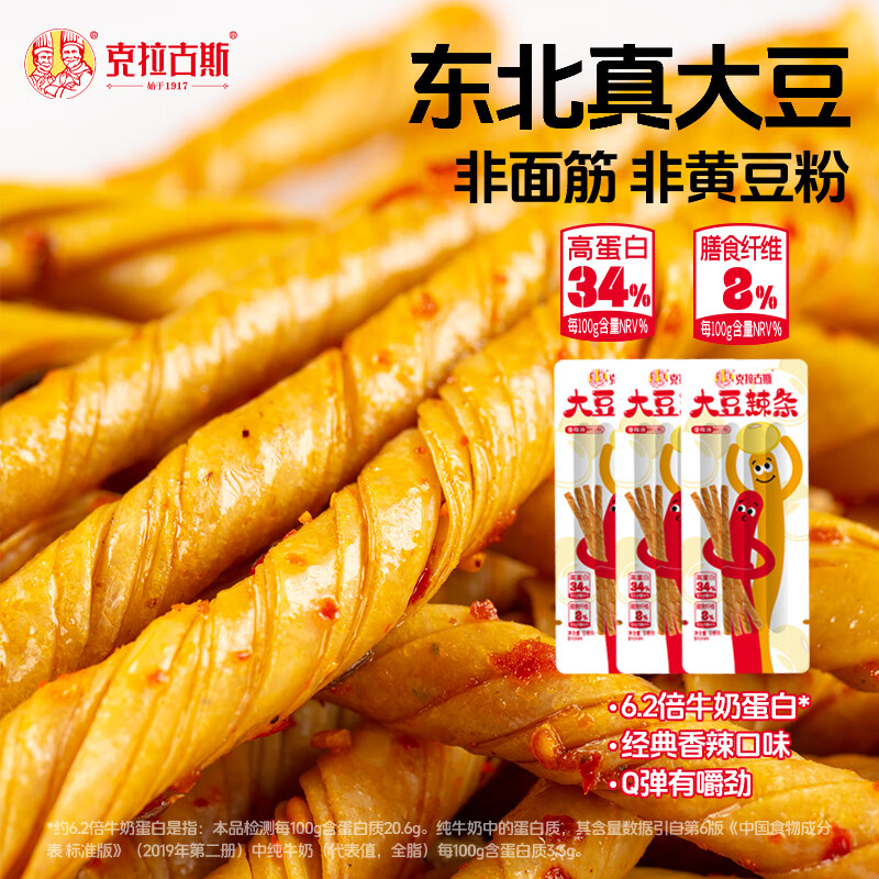 克拉古斯大豆辣条麻辣豆卷手撕麻辣条网红追剧解馋零食独立包装微辣香干 大豆辣条25g【单包尝鲜】