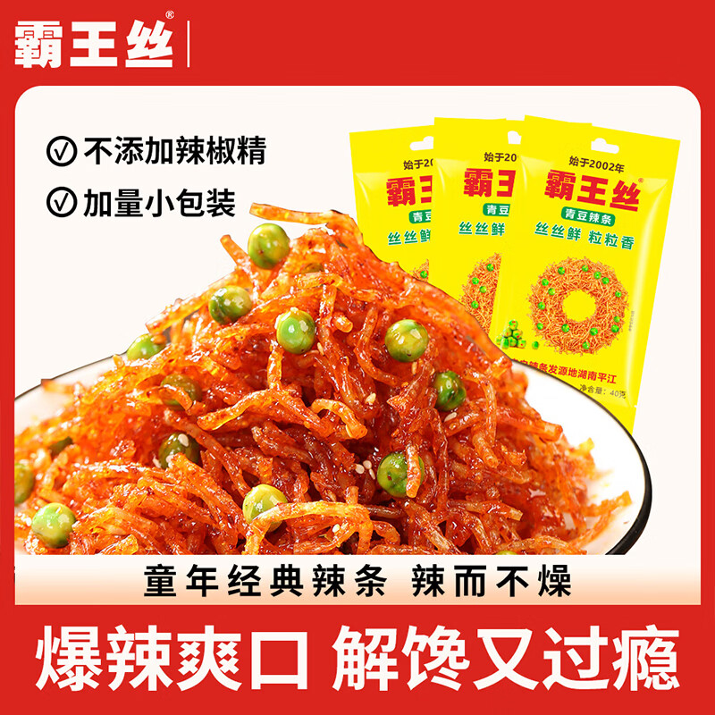 霸王丝青豆辣条40g*3包 湖南特产8090怀旧解馋零食 网红休闲小包装辣丝