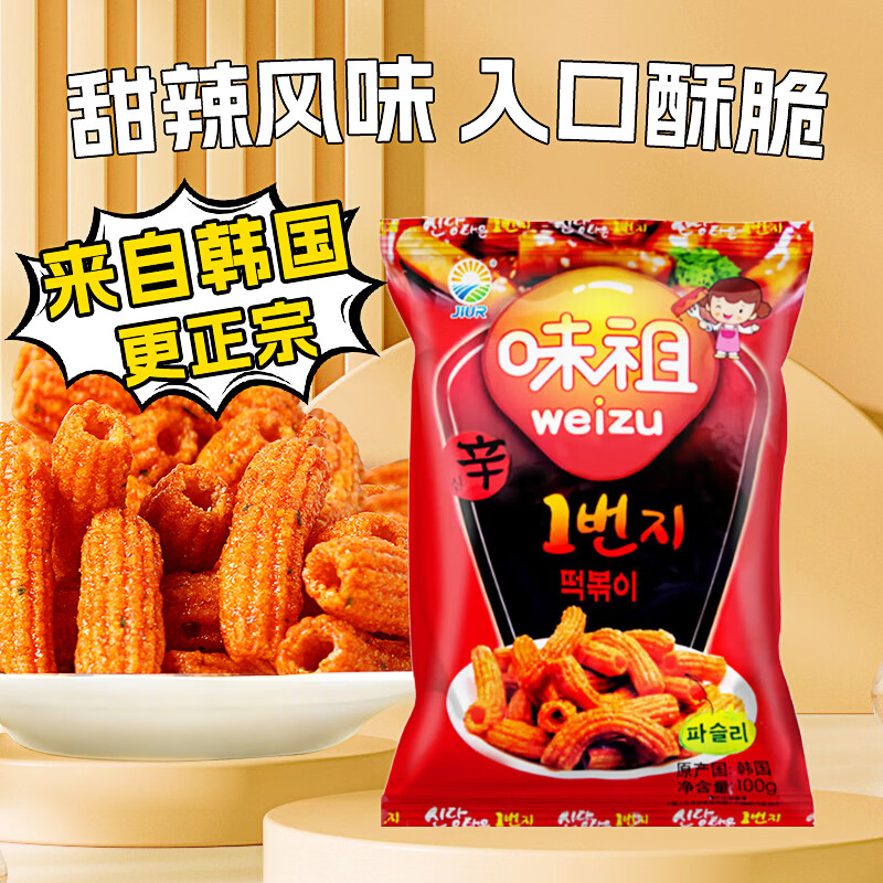 九日韩国进口红炒年糕条辣炒空心脆薯条网红炸鸡零食休闲即食100g