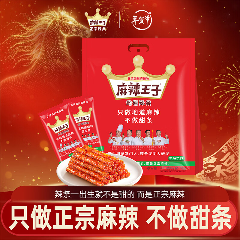 麻辣王子正宗辣条微麻微辣418g休闲零食大礼包独立小包装聚会郊游网红小吃