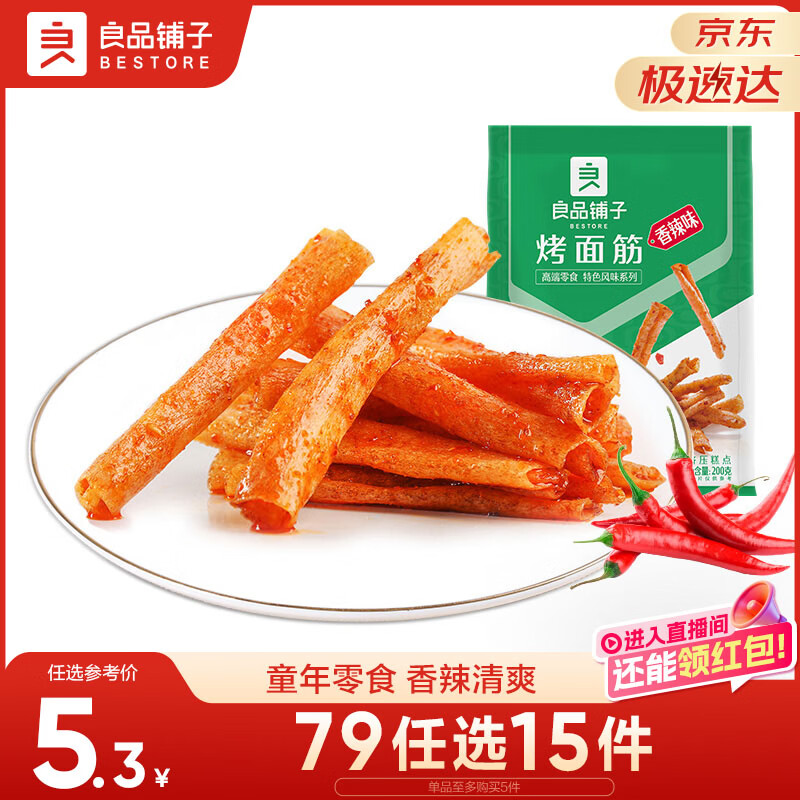 良品铺子 烤面筋香辣味辣皮辣片网红辣条小零食休闲小吃200g
