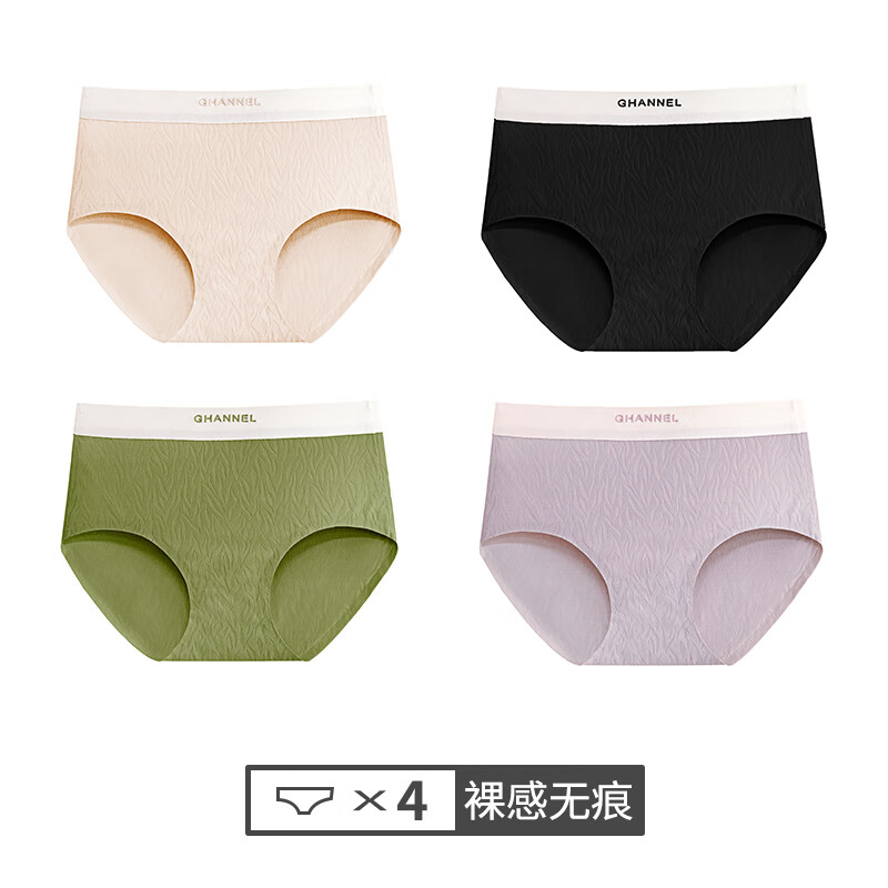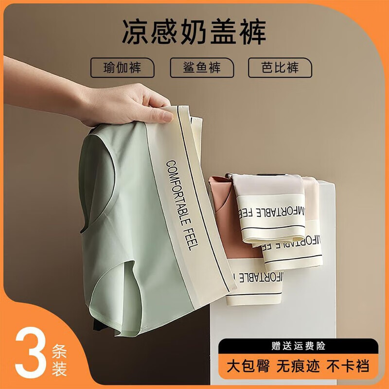美宅(MEIZHAI)无痕内裤女2025新款瑜伽运动裤中腰抗菌纯棉裆包臀夏薄款冰丝 奶油肤+经典黑+香茶绿+木槿紫 M 80-100斤