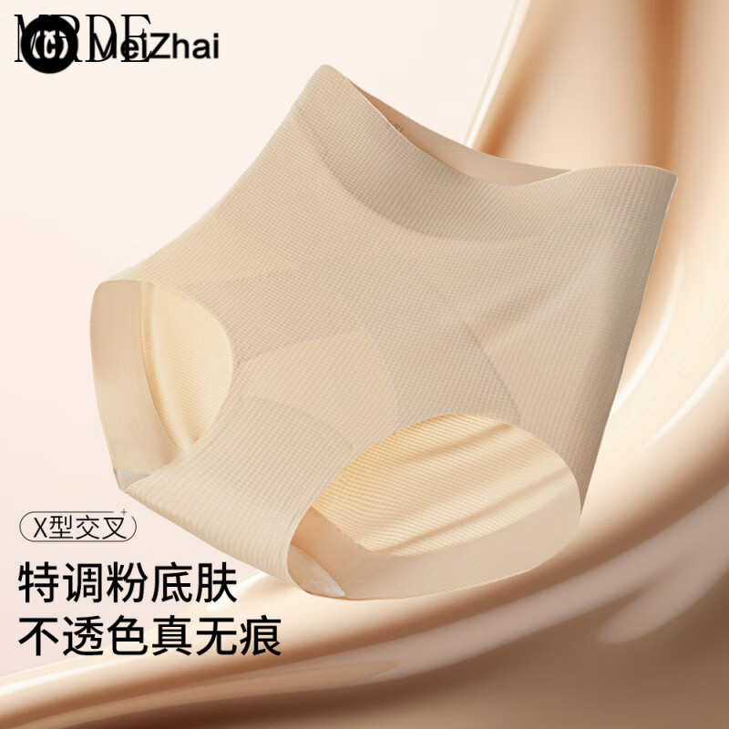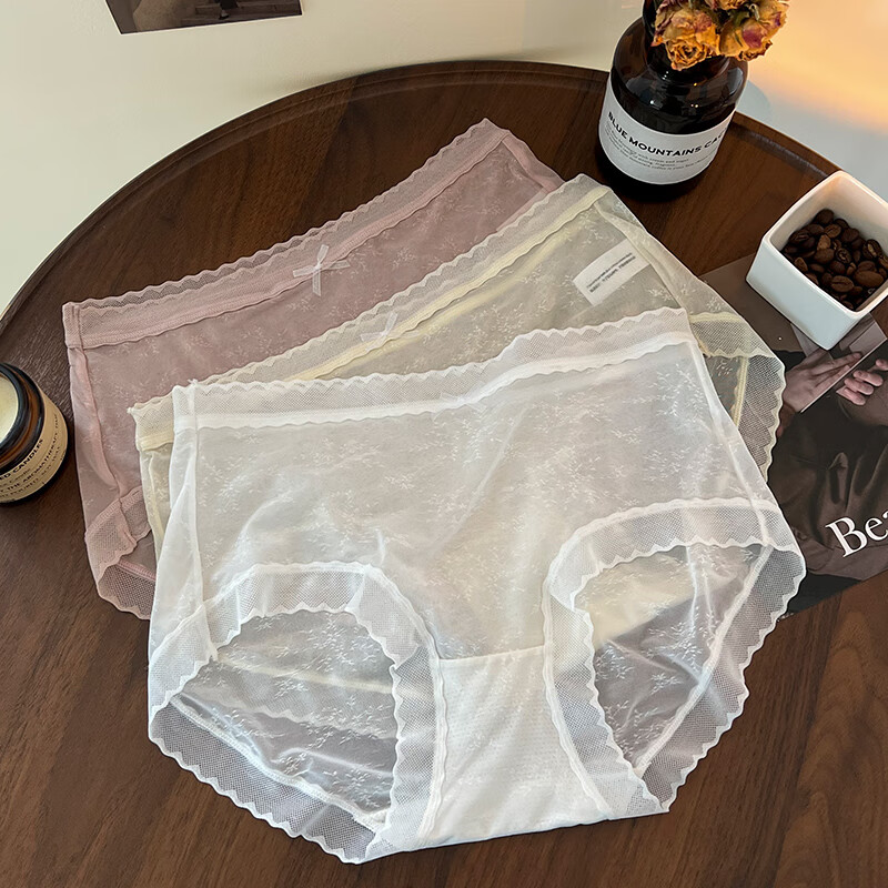 美宅(MEIZHAI)性感内裤女无痕夏季薄款女士蕾丝2024新款小香风冰丝不夹臀三角裤 慕绒粉+象牙白+奶馨肤 轻柔面膜裤 M 【80-100斤】