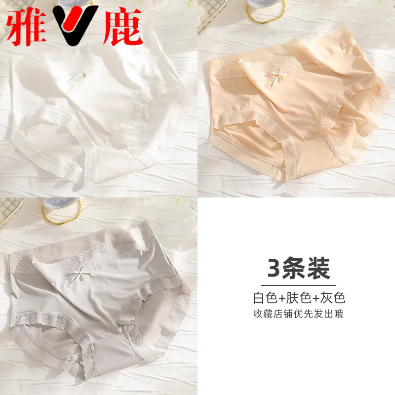 雅鹿纯色美宅内裤女新款面膜冰丝无痕中腰夏季薄款透气棉裆性感 【装】白色+肤色+灰色 3条 M (80-100)斤