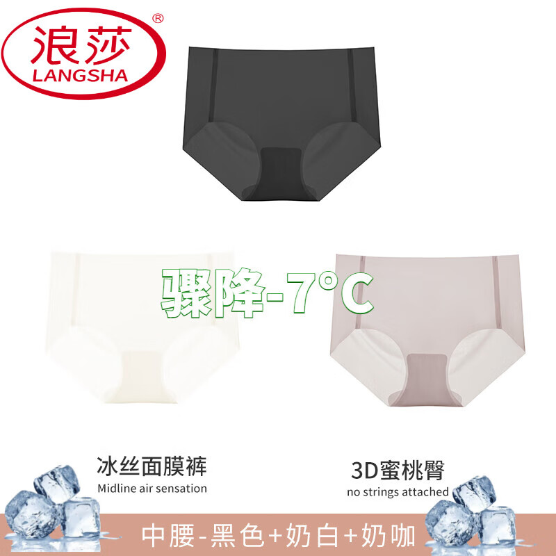 浪莎(LangSha)美宅冰丝无痕内裤女不夹臀夏季薄款中腰三角2025女士女生 【无痕 凉感冰丝】黑色+奶白+奶 M 80-100斤