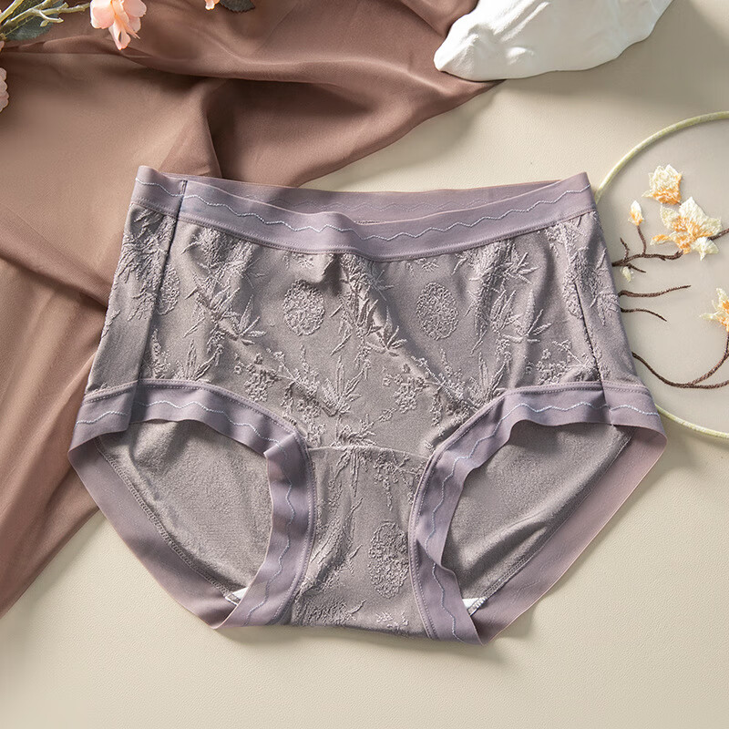 美宅(MEIZHAI)国风浮雕内裤女款无痕冰丝大码新中式浮雕蕾丝女士夏薄款7A抗菌桑 丁香紫 XL (120-160斤)