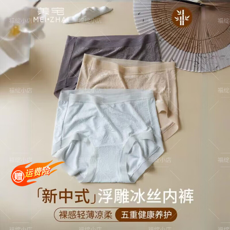 子木雅居纯色美宅内裤女新款面膜冰丝无痕中腰夏季薄款透气纯棉裆性感抗菌 1条装【白色】 M 建议80-100斤