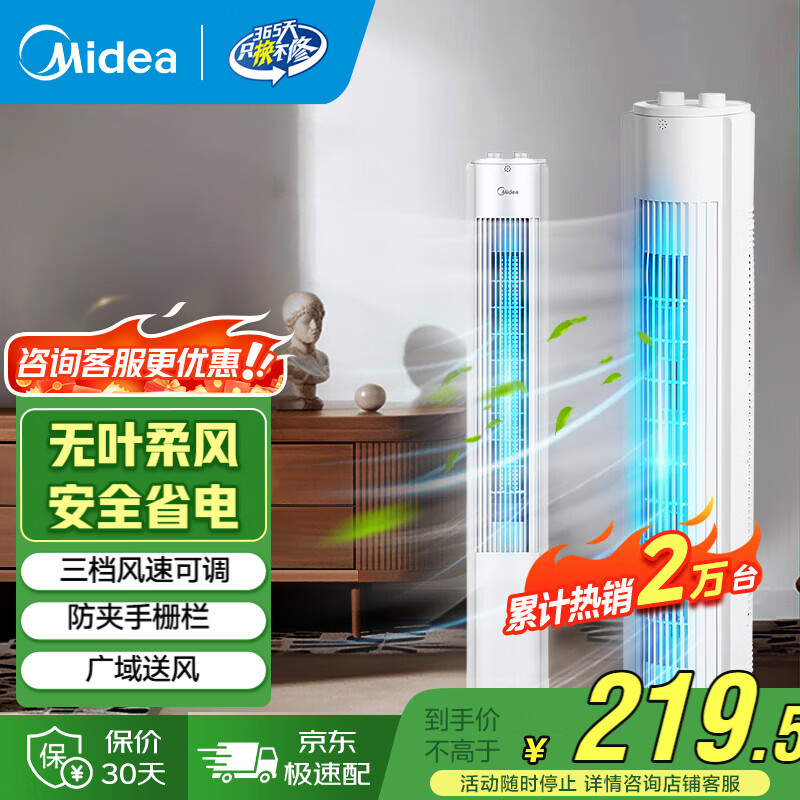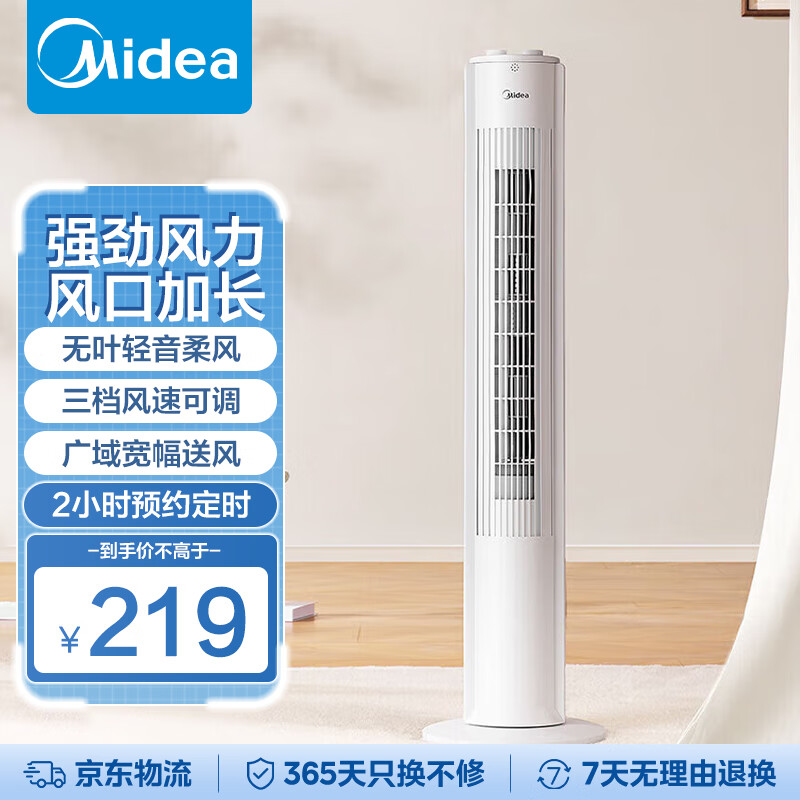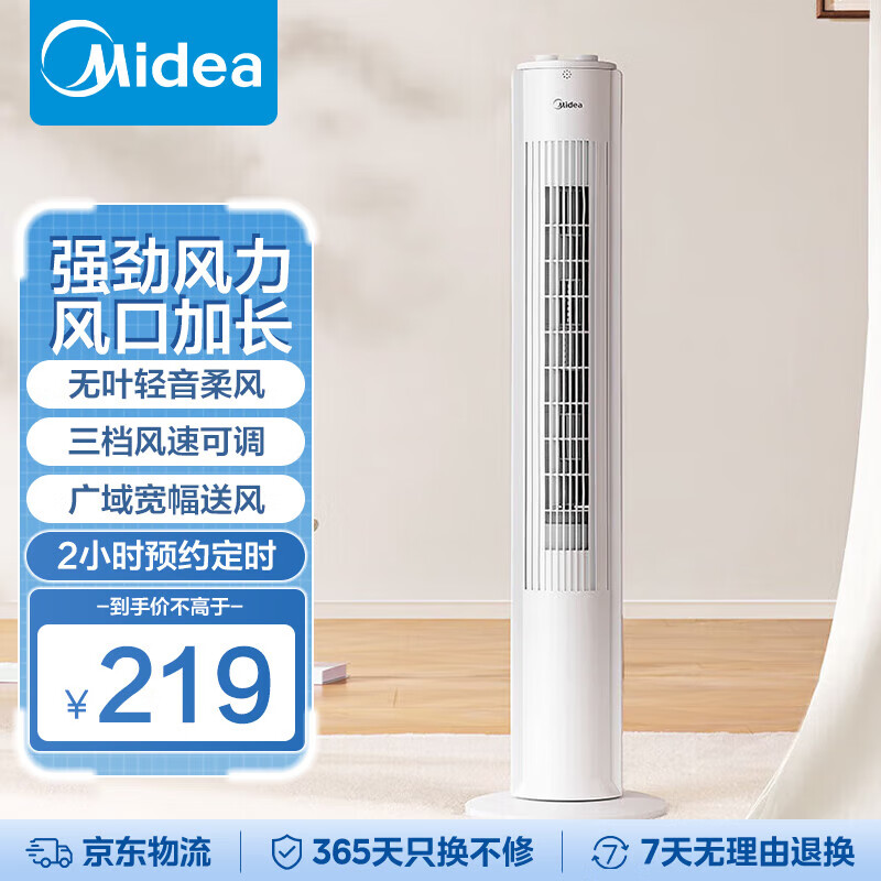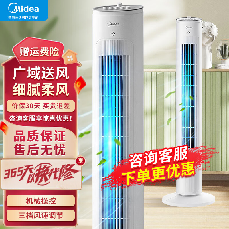 美的(Midea)(Midea)定时塔扇家用电风扇大风量无叶风扇轻音电扇落地扇 ZAF09MA【机械款】