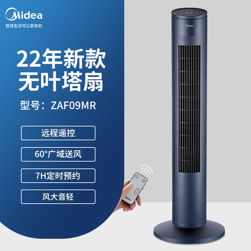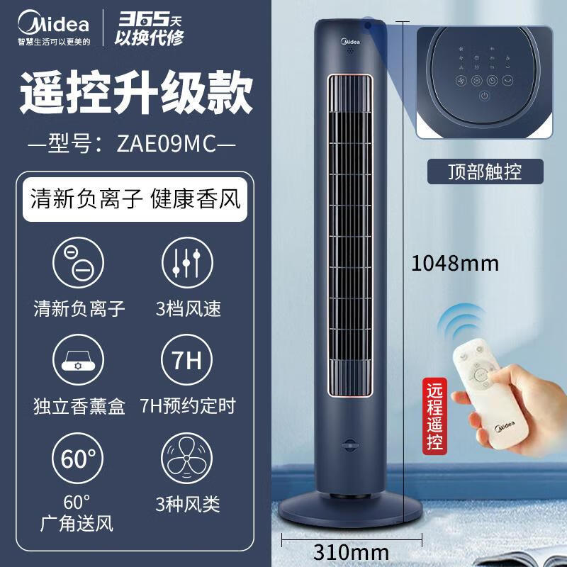 美的(Midea) 电风扇 塔扇家用冷风扇立式低噪无叶风扇卧室客厅空气循环风扇定时预约电扇宿舍节能风扇 ZAH09MY【国家补贴 遥控无叶塔扇】 塔扇