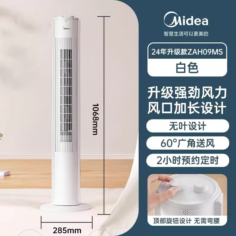 美的(Midea) 电风扇 塔扇家用冷风扇立式低噪无叶风扇卧室客厅空气循环风扇定时预约电扇宿舍节能风扇 ZAH09MS【国家补贴 旋钮无叶塔扇】 塔扇