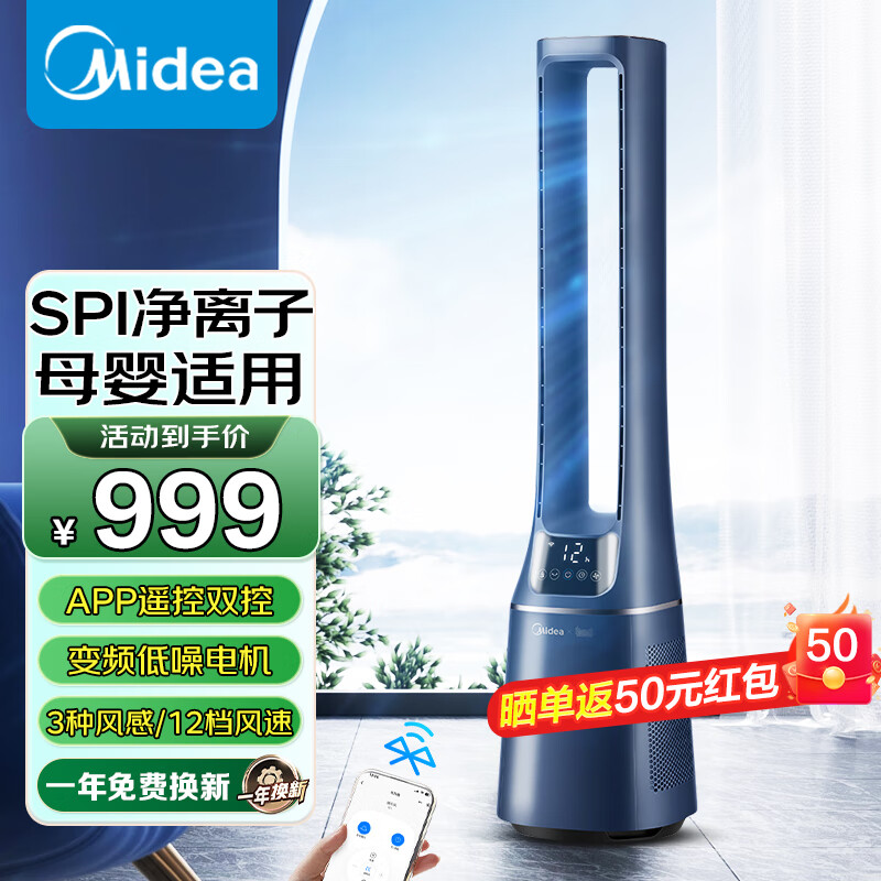 美的(Midea)电风扇家用塔扇智能变频轻音无叶风扇遥控落地扇预约定时卧室安静大风力空气循环扇 新升级 | SPI净离子 | APP智控