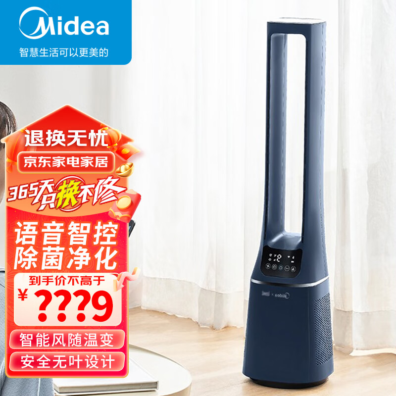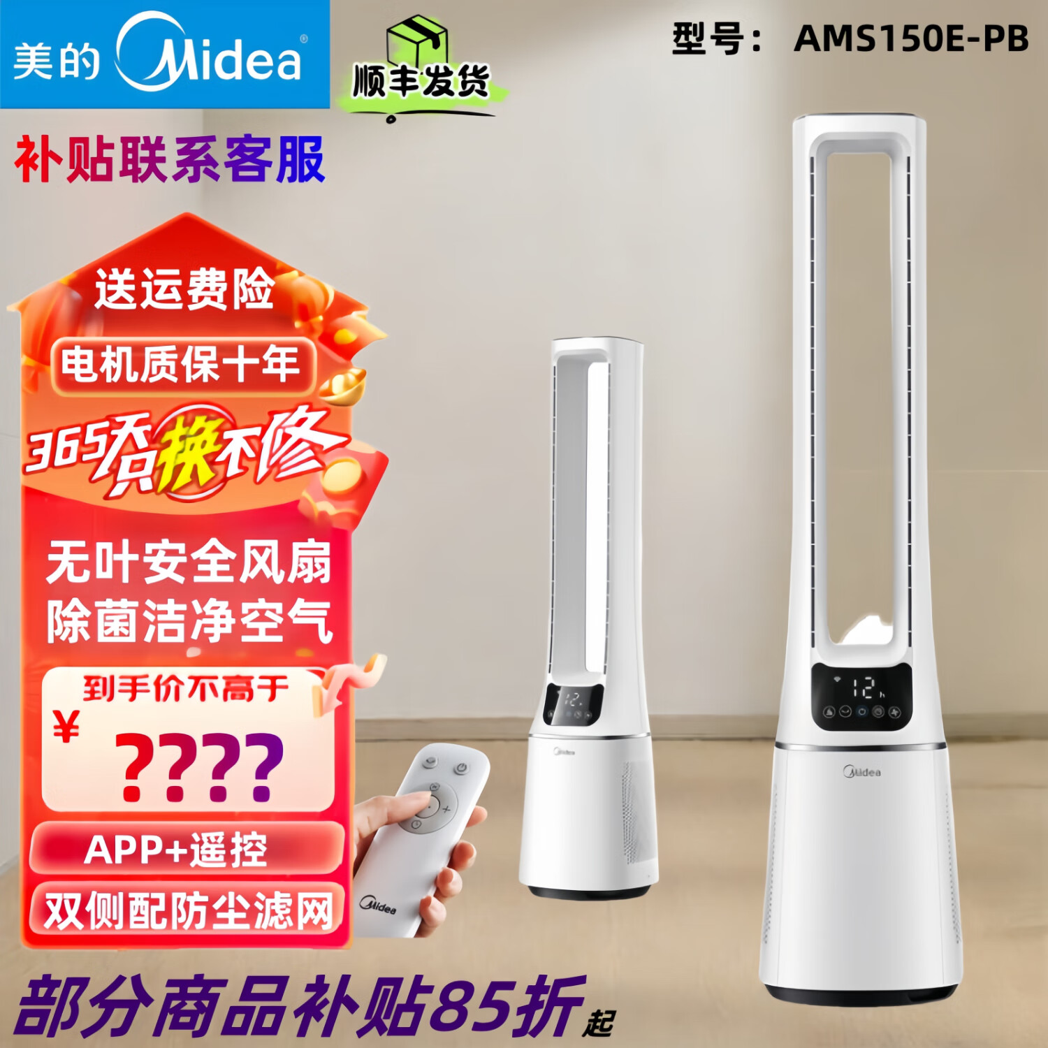 美的美的电风扇无叶风扇智能温感空气净化扇家用轻音塔扇遥控定时客厅卧室办公室APP远程控制直流电机 AMS150E-PB