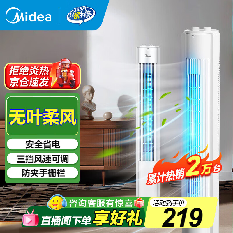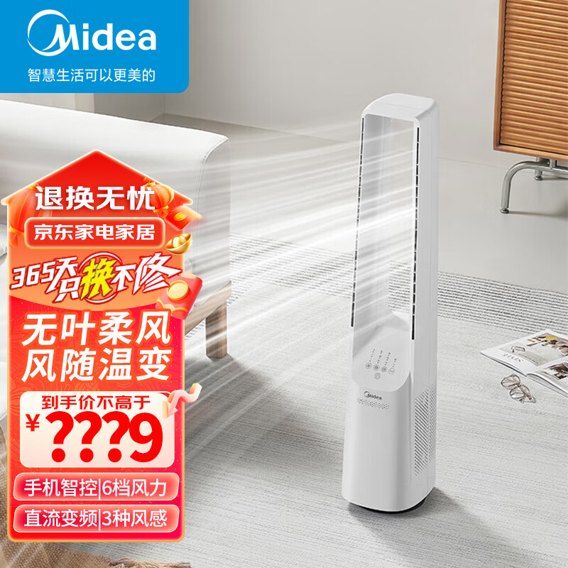 美的(Midea) 电风扇无叶落地扇塔扇低噪家用台式立式学生宿舍电风扇 【简易操控款】ZAF09MA