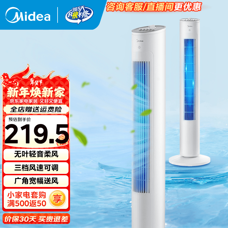 美的(Midea) 电风扇无叶落地扇塔扇低噪家用台式立式学生宿舍电风扇 ZAE09MA