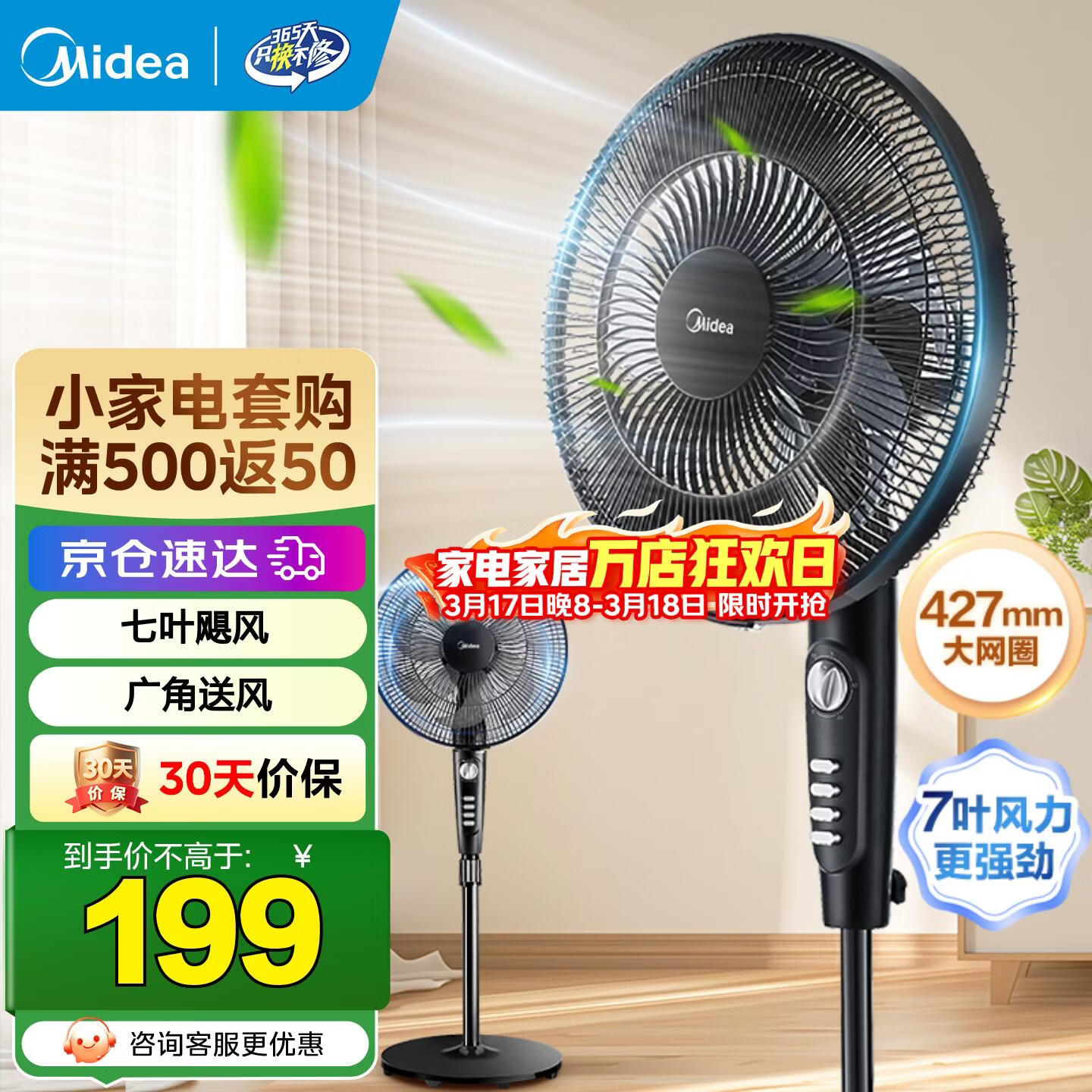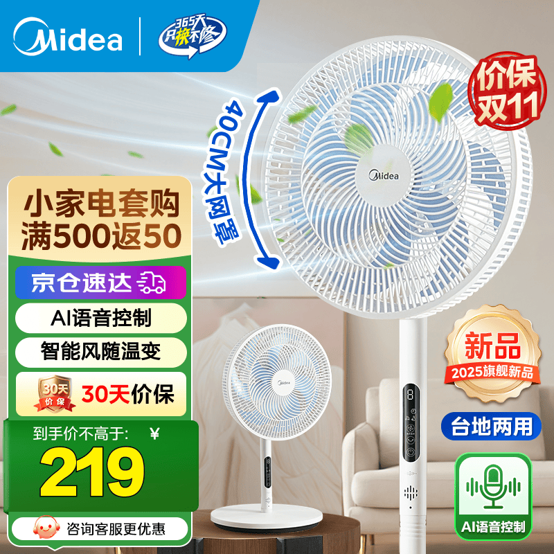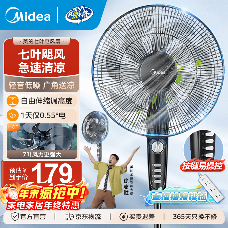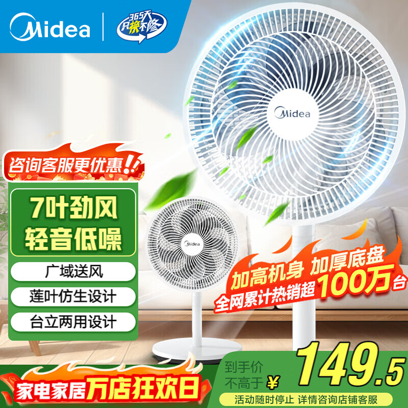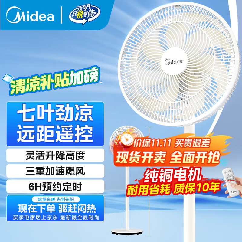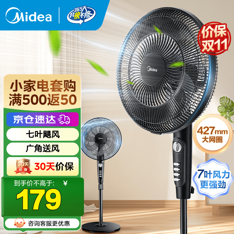 美的(Midea) 电风扇 家用风扇7叶落地扇立式轻音节能大风量电扇台扇迷你扇台立两用转页扇空气循环扇安静低音 店长推荐丨7叶劲风 百万单品 家用落地扇