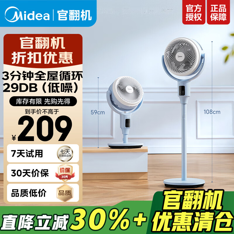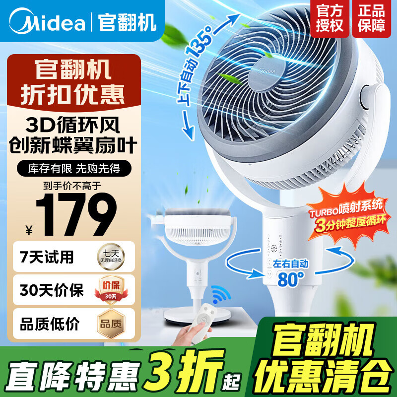 美的【官翻机】电风扇空气循环扇落地扇家用智能遥控台立两用轻音节能广角送风落地扇 【空气循环扇】