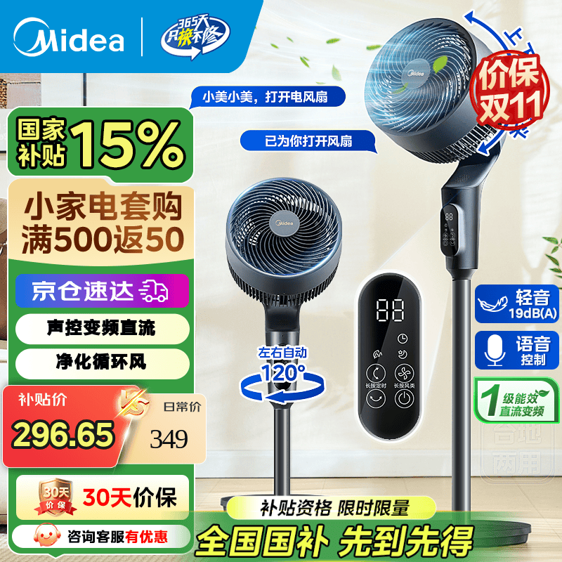 美的(Midea)空气循环扇一级变频电风扇卧室安睡循环扇语音遥控定时换气扇轻音节能电扇除菌净化 【轻音净化】一级变频空气循环扇