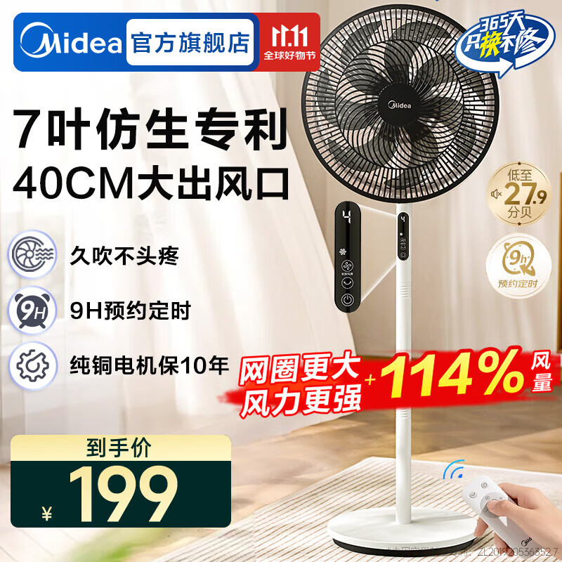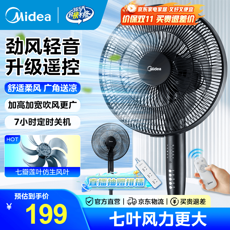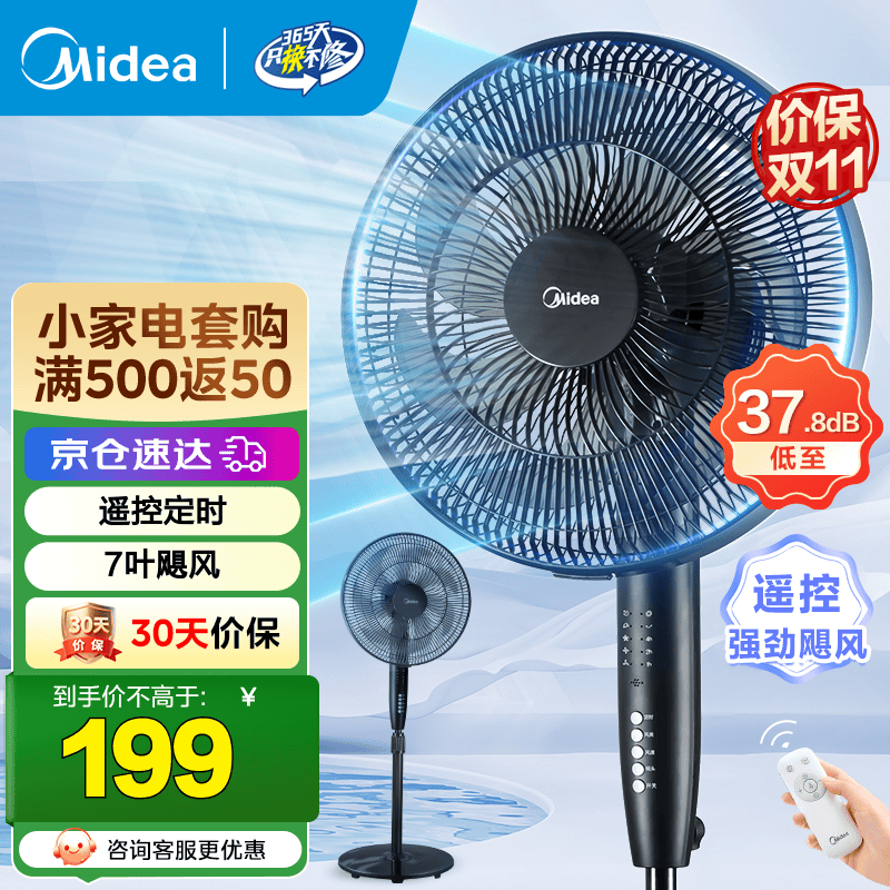 美的(Midea) 电风扇落地扇家用大风量空气循环摇头电扇宿舍轻音低噪智能扇 【仿生7叶专利 遥控定时】重磅上市