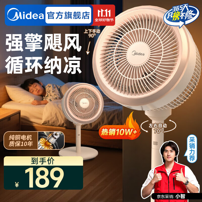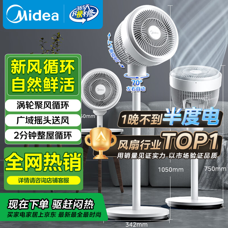 美的(Midea)【暴风循环】空气循环扇大风量摇头电风扇家用台式落地扇轻音卧室节能小风扇柔风轻羽扇 FGA24TQ