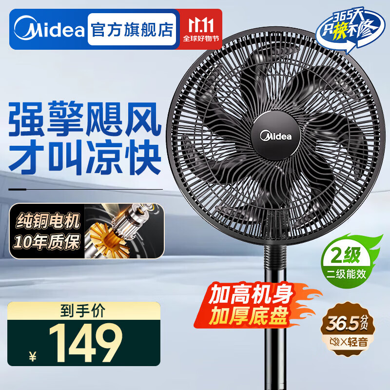 美的(Midea)电风扇落地扇家用大风量 远距强风电扇 立式轻音节能可定时降温 【超级爆款】7叶大风力35MA
