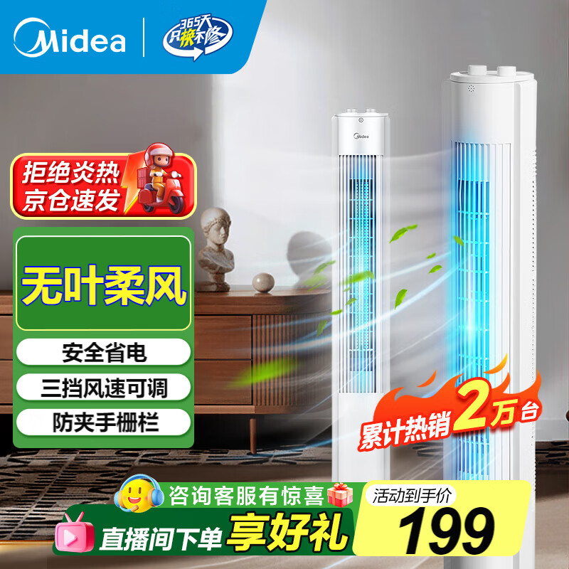 美的(Midea)电风扇家用 无叶塔扇立式落地风扇客厅卧室轻音节能定时摇头循环大风力电扇落地扇 【柔风轻音 性价比首选】ZAH09MS