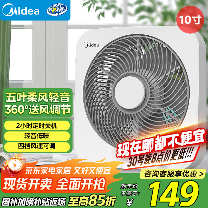 美的(Midea)电风扇家用7叶落地扇摇头电风扇循卧室宿舍轻音风扇台式桌面小型风扇台地两用升级款 白色丨7叶台地两用