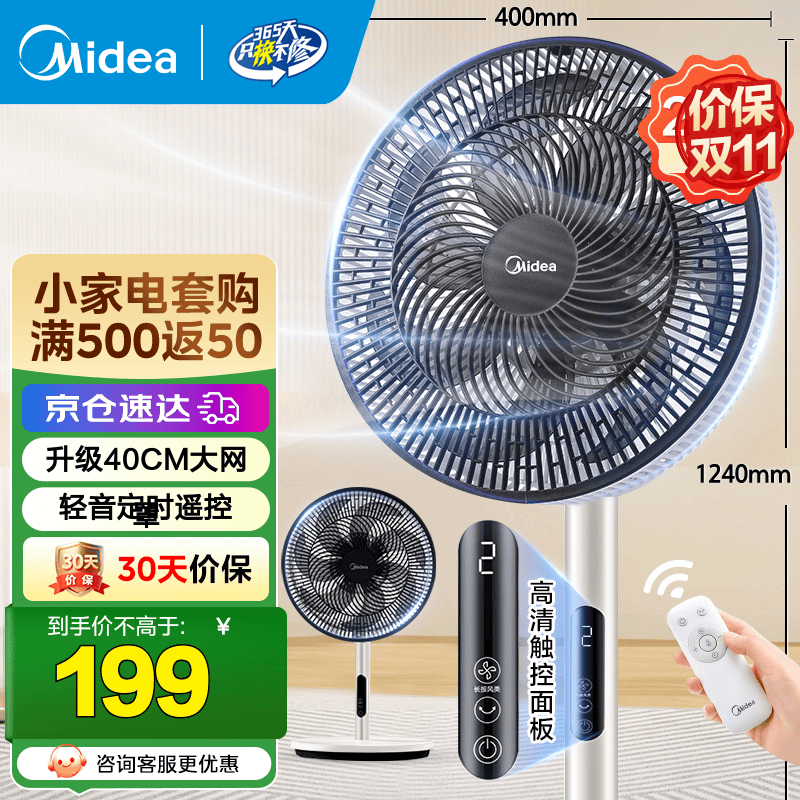 美的(Midea)电风扇落地扇家用大风量 远距强风电扇 立式轻音节能可定时降温 【升级遥控】风大音轻35ER