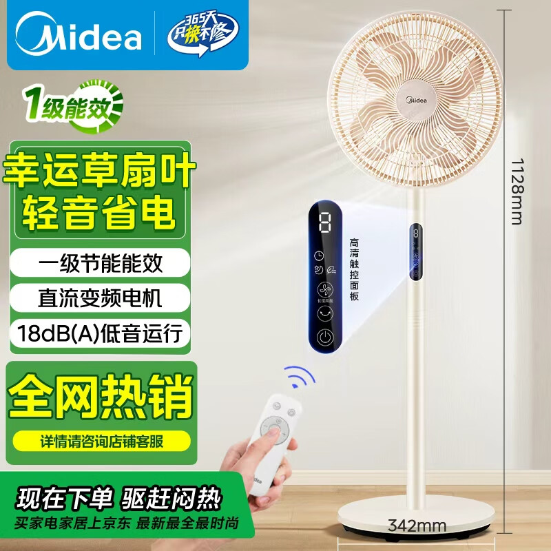 美的(Midea)【幸运草安睡风扇SE】直流变频轻音家用立式遥控电风扇柔风落地扇台式桌面大风量一级能效轻羽扇