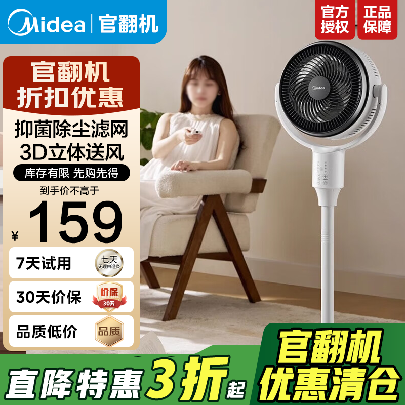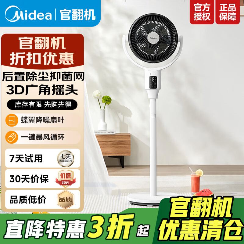 美的【官翻机】空气循环扇落地扇直流变频电风扇落地扇家用智控电扇轻音轻羽扇 【3D全自动摇头】FGD24UZR
