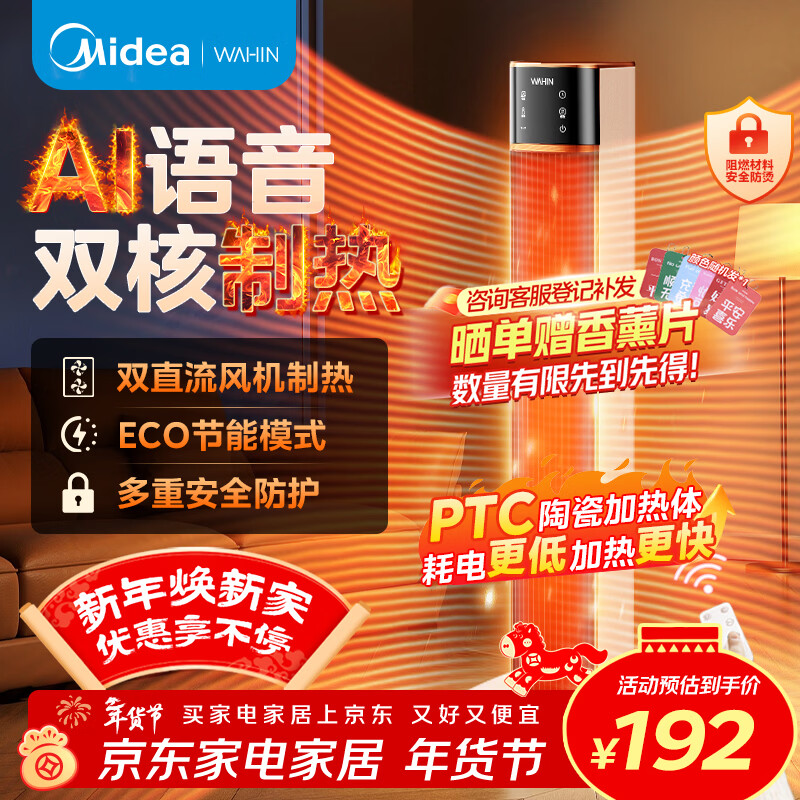 华凌 美的电暖器暖风机家用/电热取暖器/加热风机/电暖气/电热风扇大面积摇头华凌神机 WH-NFT20F05YR
