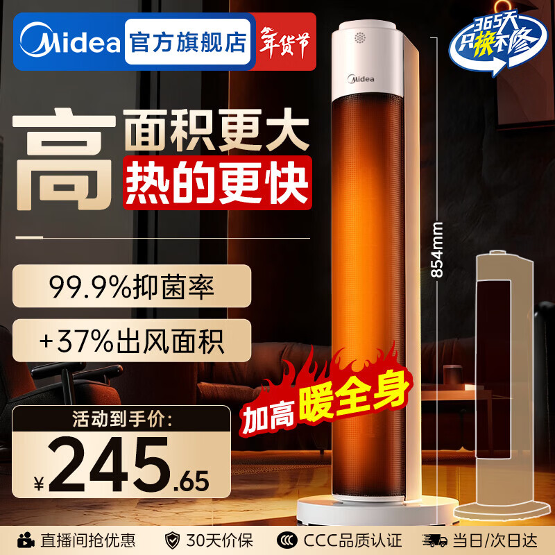 美的(Midea)石墨烯暖风机电热取暖器家用智能遥控电暖气浴室电暖风立式电暖器定时热风机小太阳暖风扇全屋升温 【抑菌滤网 升级高度】低音送暖