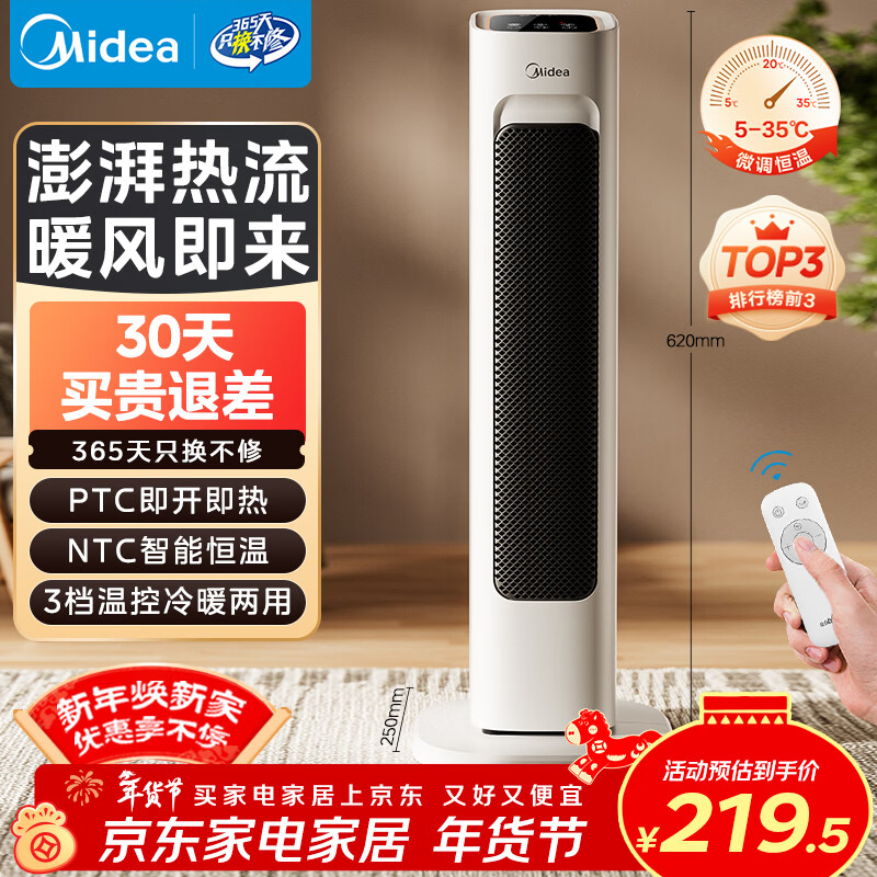 美的(Midea)电热取暖器暖风机电暖气 家用冷暖风机电热风机电暖器 电暖风热风扇小太阳烤火炉电暖器 【PTC陶瓷速热】 遥控器控制