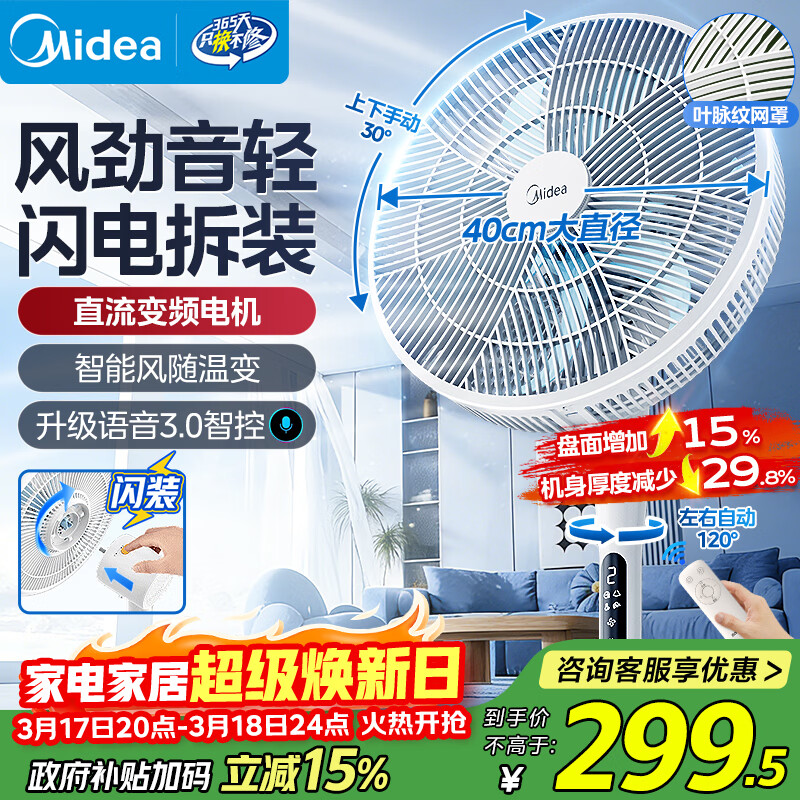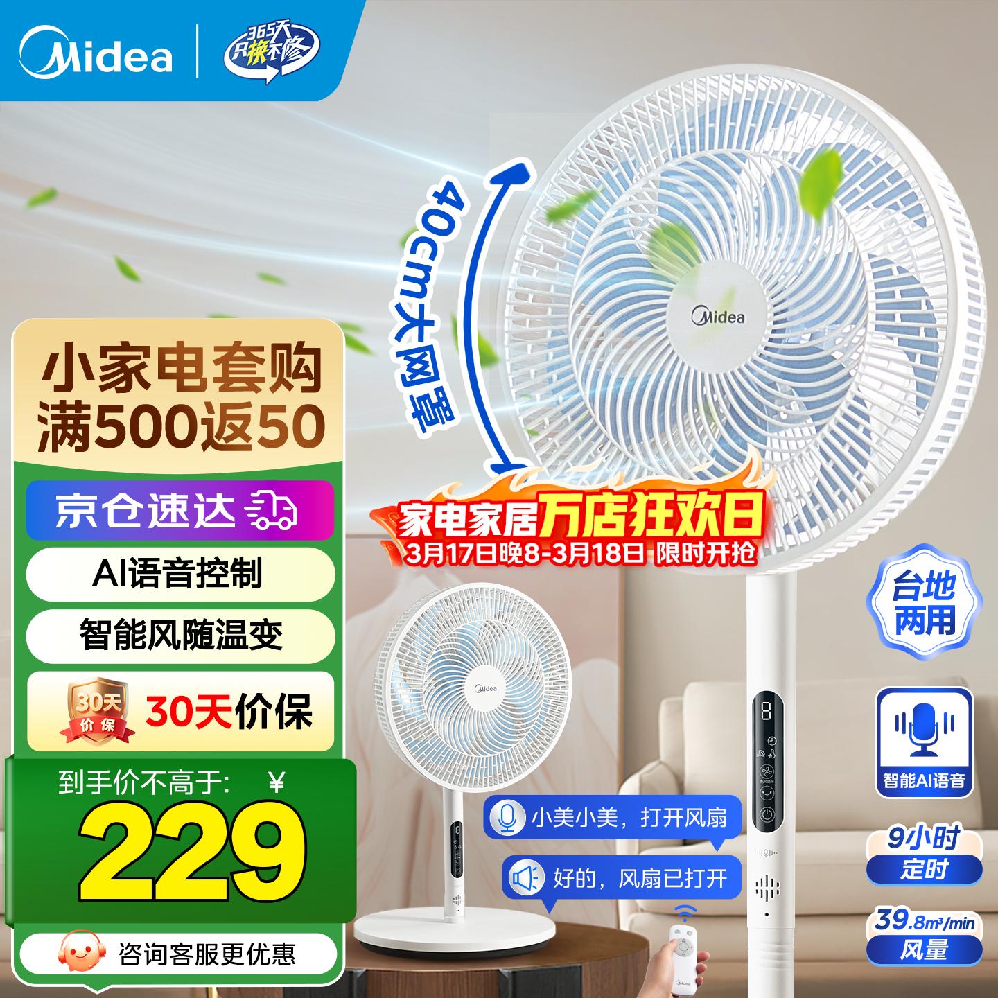 美的(Midea)【一键闪装】电风扇 落地扇立式家用节能一级能效卧室客厅大风力语音变频直流小型风扇 SDJ35MBH