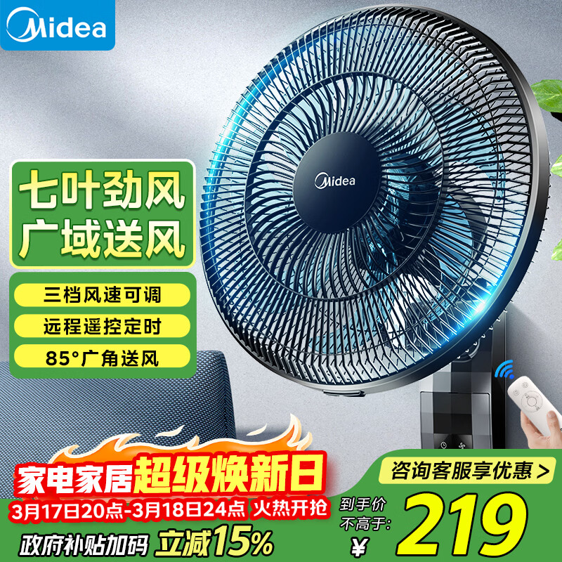 美的(Midea)壁扇 挂壁电风扇家用七叶遥控风扇食堂餐厅商用电扇摇头工业壁挂式工程扇 FWA35WAR