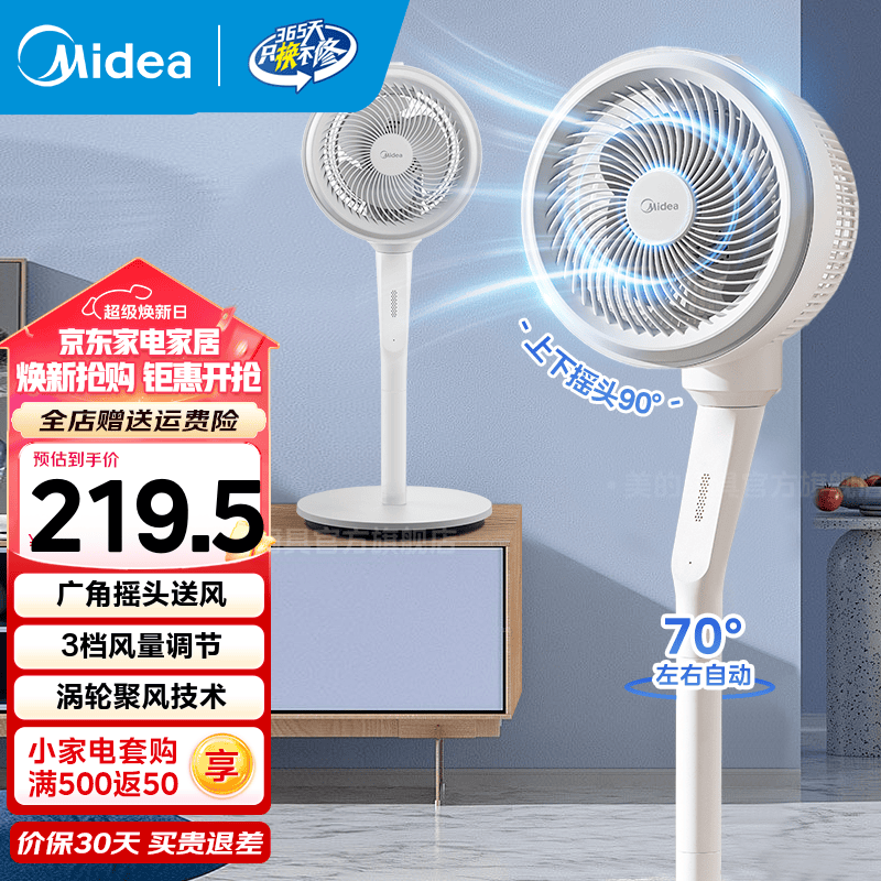 美的(Midea)电风扇 空气循环扇家用落地扇立式节能风扇轻音低噪卧室宿舍台式摇头小型电扇 【整屋新风·台地两用】FGA24TS