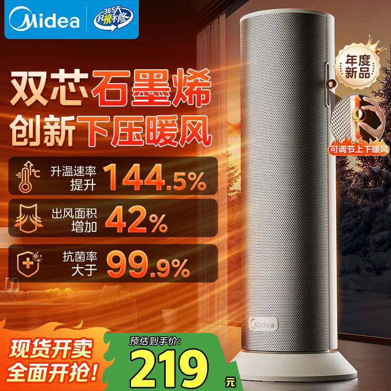 美的(Midea)【石墨烯速热】直流变频家用暖风机取暖器/小型电暖器电暖气/电热风扇/节能小太阳暖脚神器HFS20DQ