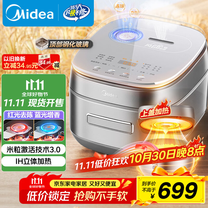 美的(Midea)【国家补贴】风动稻香Pro电饭煲电饭锅4L立体IH加热一键双层快速煮智能电饭煲MB-HS433(3-4人)