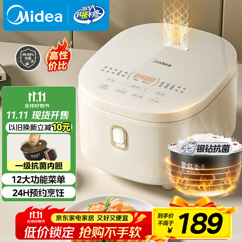 美的(Midea)政府补贴 电饭煲电饭锅3-4人家用3L大容量 28分钟快速饭多功能微压智能预约电饭煲 MB-RE319