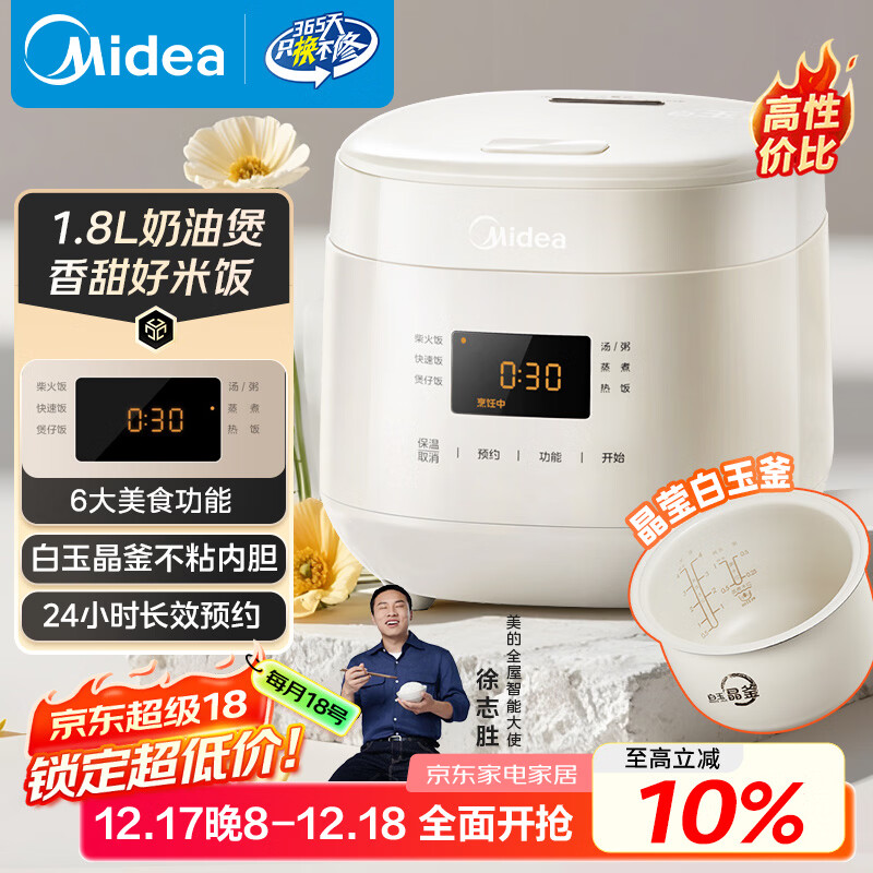 美的(Midea)电饭煲电饭锅小型迷你家用1-2人小容量智能预约多功能微压煲汤小米粥1.8L小饭煲品牌官方RC182