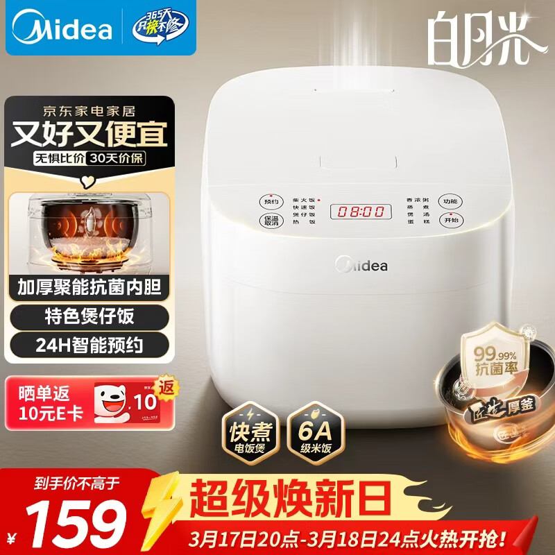 美的(Midea) 电饭煲 家用电饭锅智能预约多功能微压 可煮小米粥迷你小型1-2-3-4人煮饭锅电煮锅易清洗小巧机身 【节能版】 白色 FB30M161 3L